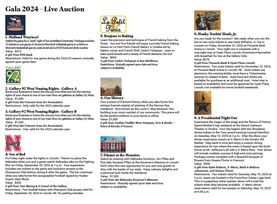 Every August, Gallery 92 West hosts its annual Fundraising Gala. This event celebrates the successes of the past year and raises funds to secure FAAA's ability to carry out its mission in the coming year. Guests enjoy food, drink, games and a unique selection of both live and silent auction items.