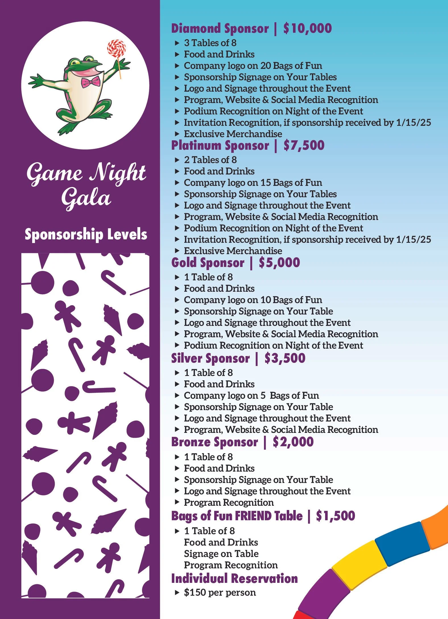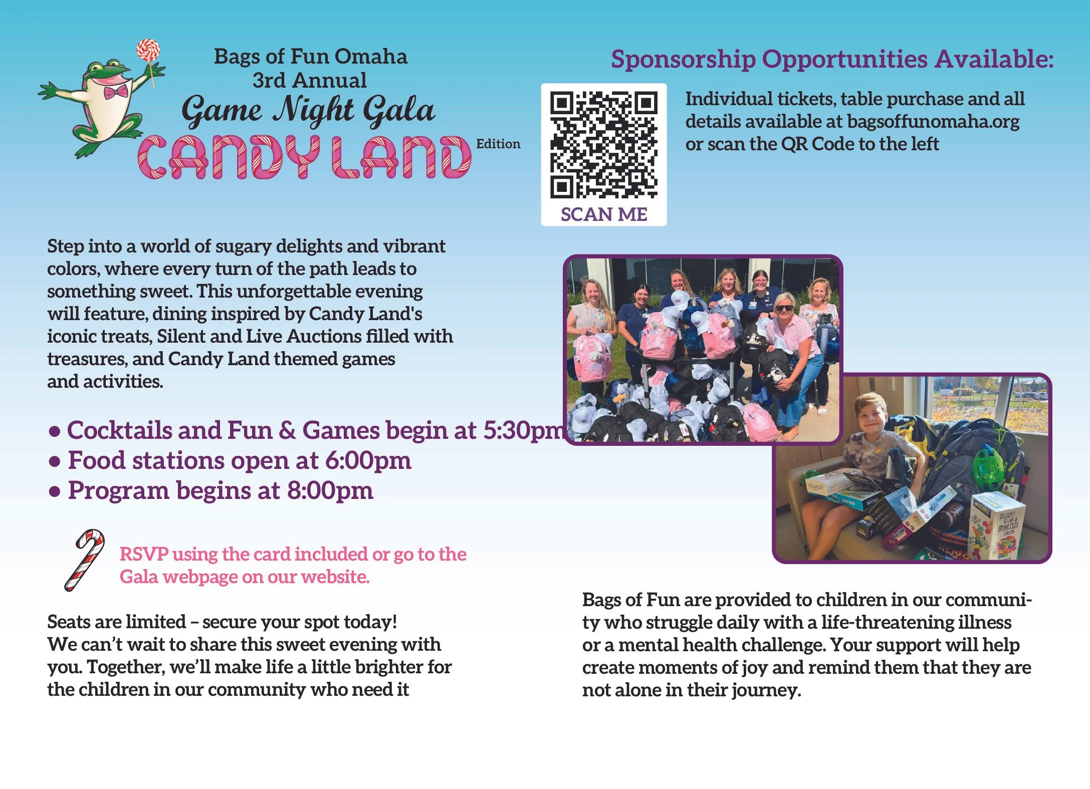 Every year Bags of Fun hosts a game night gala to raise money to provide Bags of Fun to children with life threatening illnesses to ease their struggles and bring some joy and fun into their life.